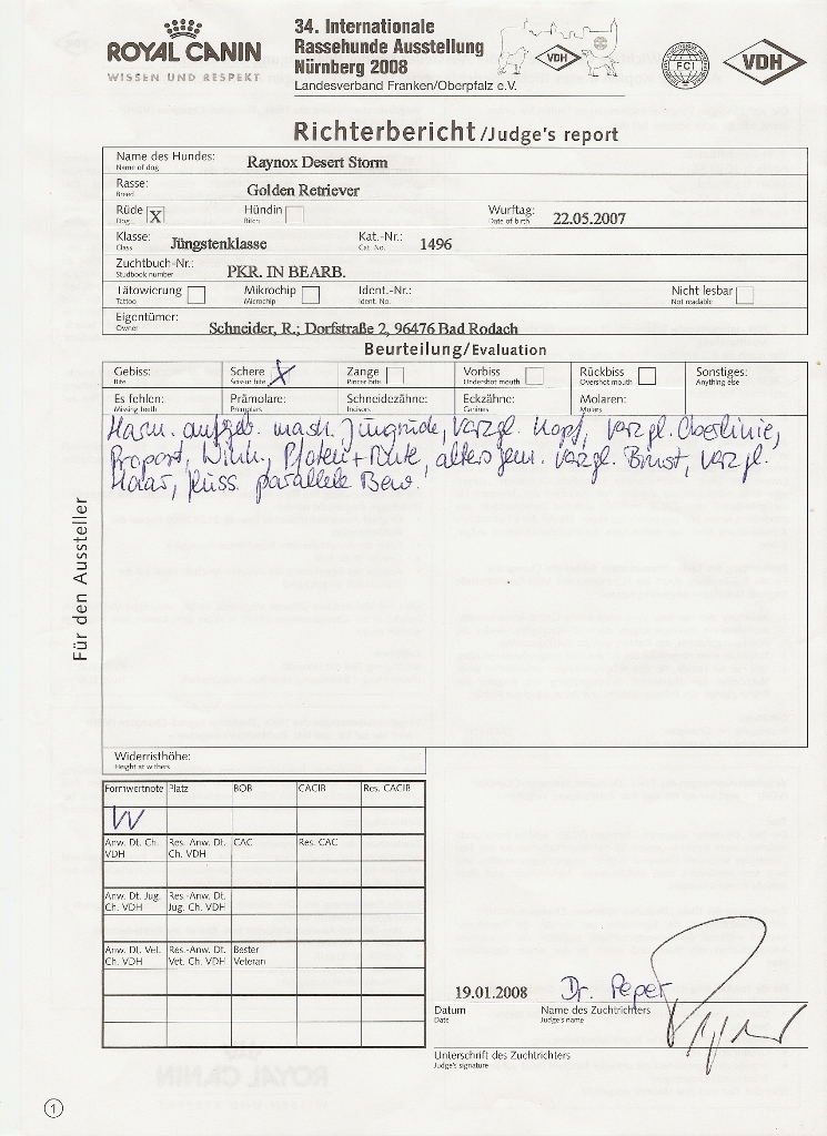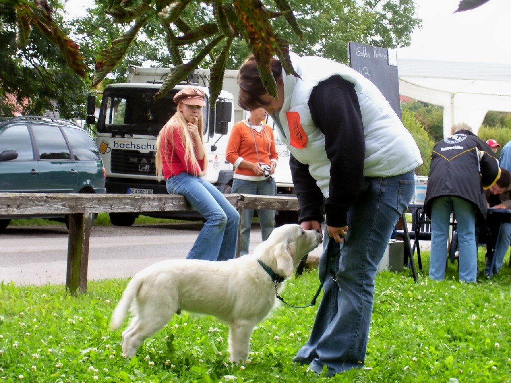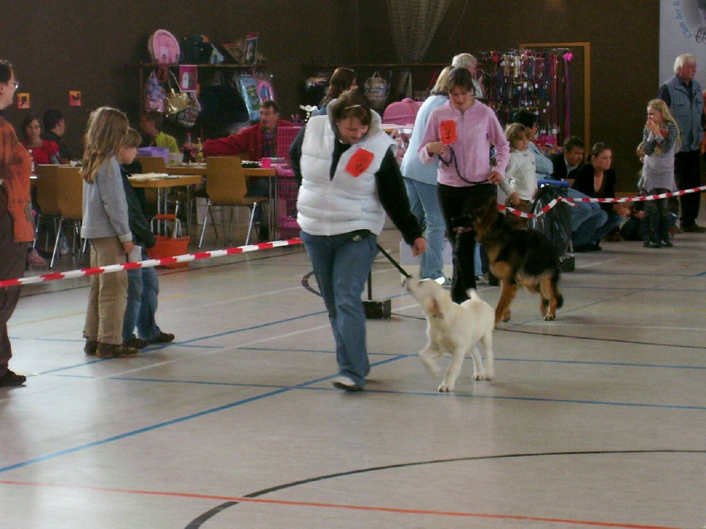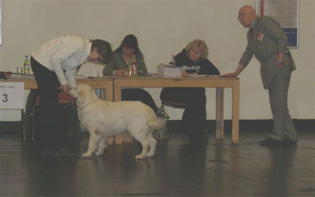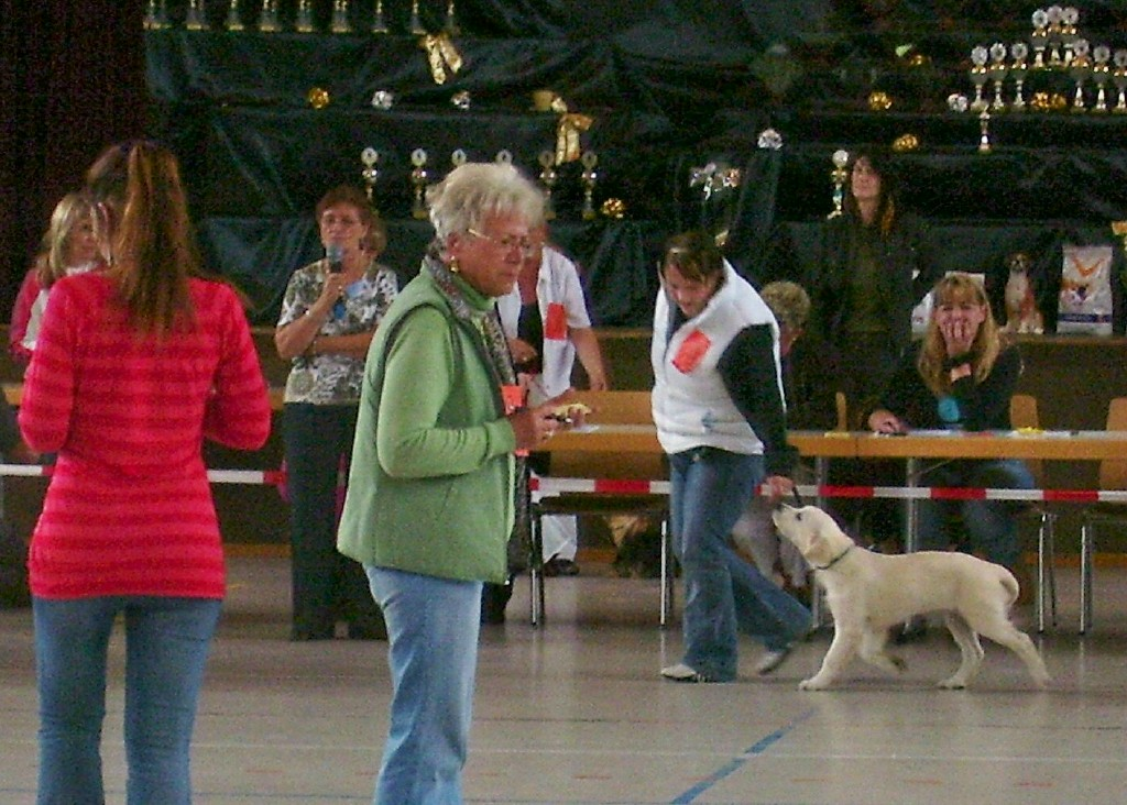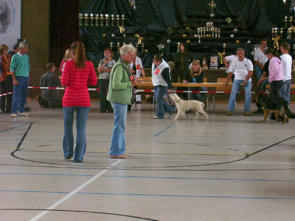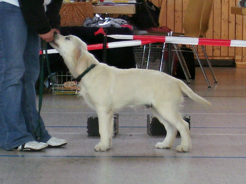 MÖRMEL, just do it again!! Unser “Womanizer” Stormy wurde am vergangenen Wochenende, nach fast 8 Monaten Ausstellungsabsenz, zum ersten und gleichzeitig letzten Mal in der Zwischenklasse auf der CACIB in Salzburg präsentiert. Nachdem die französische Richterin ein besonderes Faible für dunkle Hunde hatte, waren unsere Chancen nicht so groß. Nachdem bereits in den vorherigen Klassen (und auch noch danach!) qualitativ sehr hochwertige (nur helle) Hunde vorzeitig den Ring verlassen mussten, gingen wir die Sache in dem Glauben an, dass man zumindest eine entsprechende Bewertung bekommen würde…… Aber….. weit gefehlt !! Stormy war vorbildlich beim Ausstellen und stand wie eine Statue. In keiner der bisherigen Ausstellungen wurde übrigens so lange Zeit für den Richterbericht benötigt wie auf dieser CACIB. Und so standen wir vor dem Richtertisch (mind. 15 – 20 Minuten) und mein Mörmel stand und stand und stand und stand…….. Er hat sich wirklich nicht einmal gerührt oder seine Position verändert, total super wie er das gemacht hat. Und mittendrin kam die Richterin und strahlte uns an und sagte immer wieder: „… he is such a lovely boy, …“ Tja und dann haben wir doch glatt ein Vorzüglich und auch noch den vierten Platz bekommen!!!!! Und dazu noch einen Richterbericht der nur so von „Excellent“ strotzt, S U P E R !!!! Den ersten Platz belegte übrigens ein Dewmist Rüde (ein guter Kennelname bringt immer eine gute Platzierung), den 2. und 3. Platz hatten Rüden deren Elternteile aus französische Kennels stammen (es lebe der Nationalstolz). Aber wollen wir mal nicht so sein, es war sehr schön und hat viel Spaß gemacht. Und weil´s so schön war, haben wir die Erfolgslinie noch etwas gesteigert, indem Margit und ihr „Blueschen“ mal eben kurz den 1. Platz in der Jüngstenklasse gemacht hat und gleichzeitig Best Puppy!!! Na, das ist doch was!!! Zum krönenden Abschluss eines schönen und sehr lustigen Wochenendes in Österreich haben wir noch einen Zwischenstopp am Chiemsee eingelegt und das „Showteam“ in aller Ausgiebigkeit schwimmen lassen. Bis zur nächsten Ausstellung grüßt euch