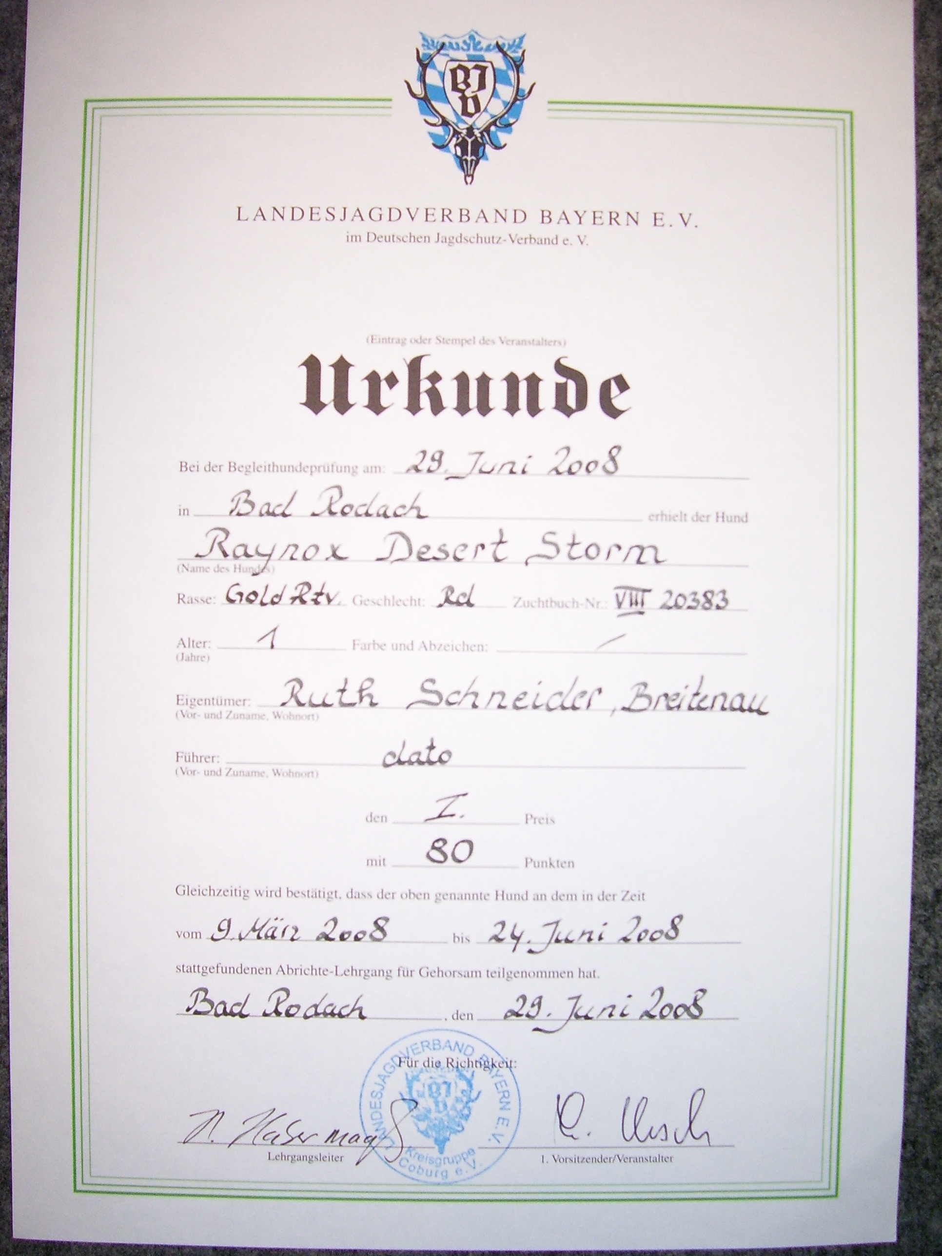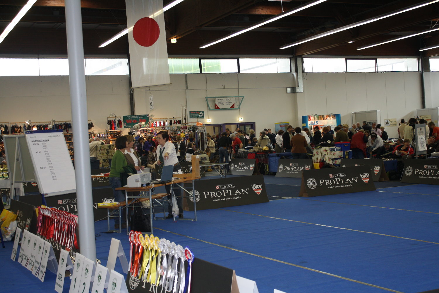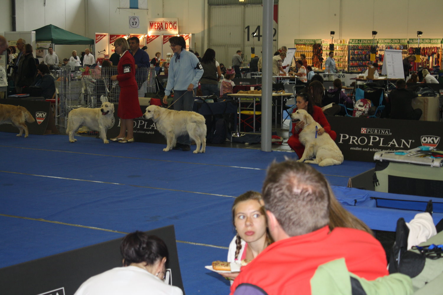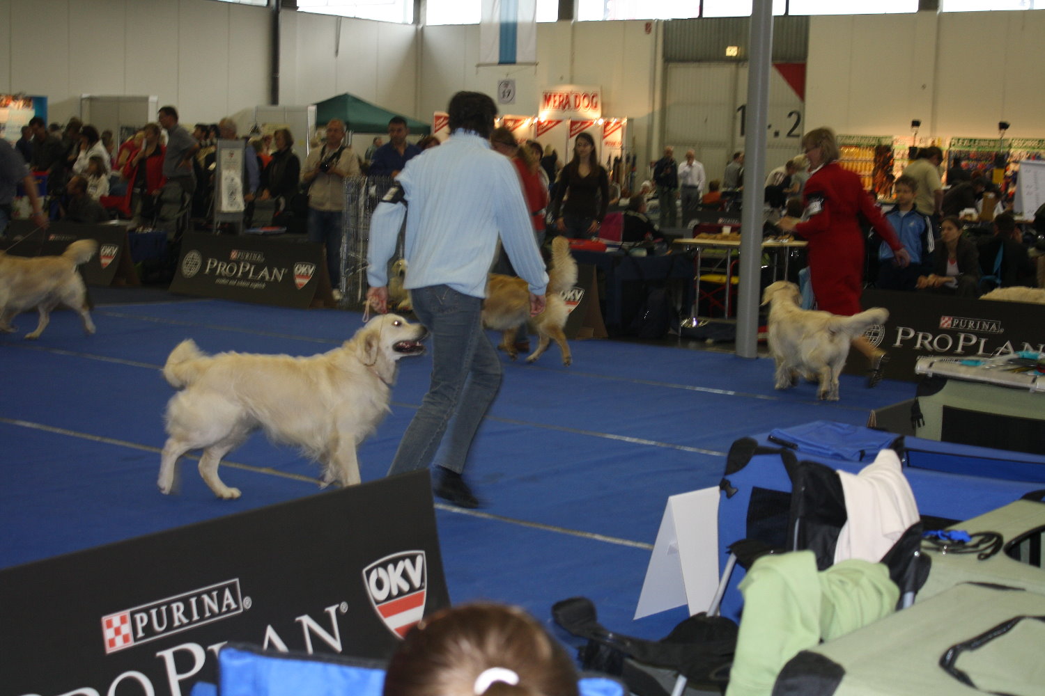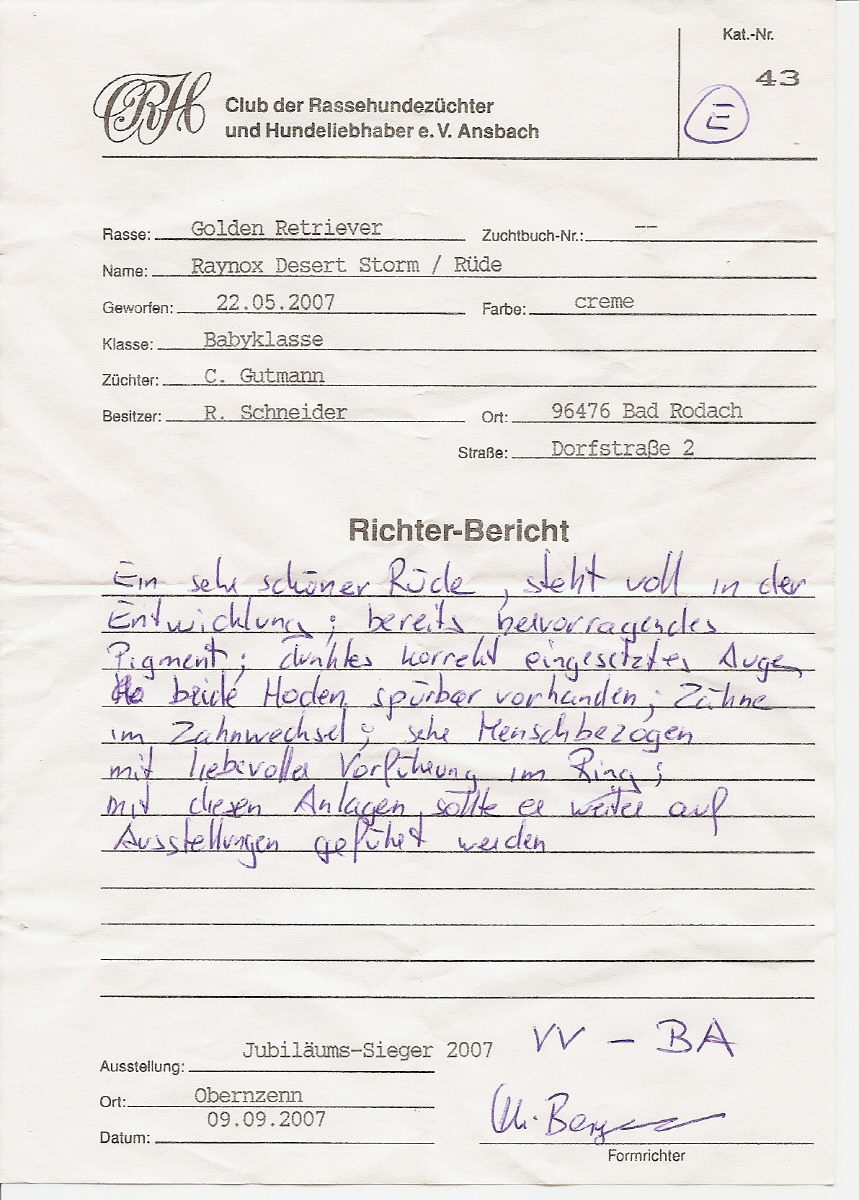 MÖRMEL, just do it again!! Unser “Womanizer” Stormy wurde am vergangenen Wochenende, nach fast 8 Monaten Ausstellungsabsenz, zum ersten und gleichzeitig letzten Mal in der Zwischenklasse auf der CACIB in Salzburg präsentiert. Nachdem die französische Richterin ein besonderes Faible für dunkle Hunde hatte, waren unsere Chancen nicht so groß. Nachdem bereits in den vorherigen Klassen (und auch noch danach!) qualitativ sehr hochwertige (nur helle) Hunde vorzeitig den Ring verlassen mussten, gingen wir die Sache in dem Glauben an, dass man zumindest eine entsprechende Bewertung bekommen würde…… Aber….. weit gefehlt !! Stormy war vorbildlich beim Ausstellen und stand wie eine Statue. In keiner der bisherigen Ausstellungen wurde übrigens so lange Zeit für den Richterbericht benötigt wie auf dieser CACIB. Und so standen wir vor dem Richtertisch (mind. 15 – 20 Minuten) und mein Mörmel stand und stand und stand und stand…….. Er hat sich wirklich nicht einmal gerührt oder seine Position verändert, total super wie er das gemacht hat. Und mittendrin kam die Richterin und strahlte uns an und sagte immer wieder: „… he is such a lovely boy, …“ Tja und dann haben wir doch glatt ein Vorzüglich und auch noch den vierten Platz bekommen!!!!! Und dazu noch einen Richterbericht der nur so von „Excellent“ strotzt, S U P E R !!!! Den ersten Platz belegte übrigens ein Dewmist Rüde (ein guter Kennelname bringt immer eine gute Platzierung), den 2. und 3. Platz hatten Rüden deren Elternteile aus französische Kennels stammen (es lebe der Nationalstolz). Aber wollen wir mal nicht so sein, es war sehr schön und hat viel Spaß gemacht. Und weil´s so schön war, haben wir die Erfolgslinie noch etwas gesteigert, indem Margit und ihr „Blueschen“ mal eben kurz den 1. Platz in der Jüngstenklasse gemacht hat und gleichzeitig Best Puppy!!! Na, das ist doch was!!! Zum krönenden Abschluss eines schönen und sehr lustigen Wochenendes in Österreich haben wir noch einen Zwischenstopp am Chiemsee eingelegt und das „Showteam“ in aller Ausgiebigkeit schwimmen lassen. Bis zur nächsten Ausstellung grüßt euch